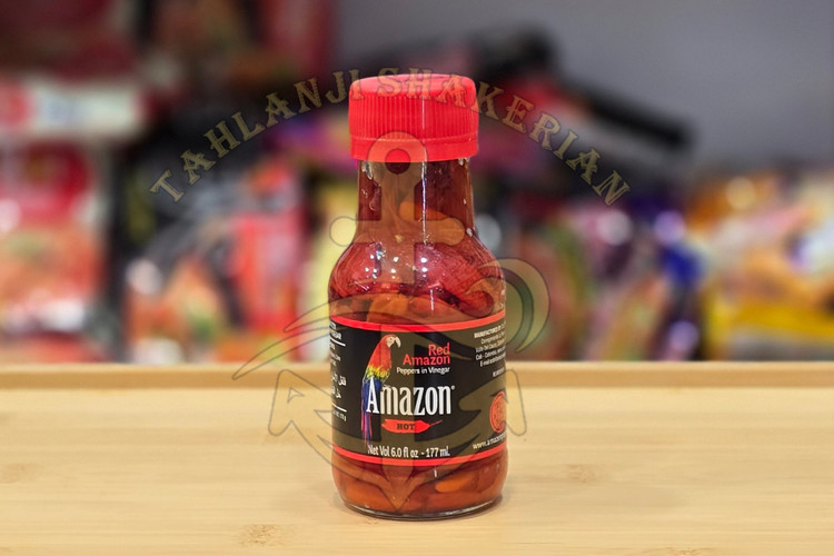 ترشی فلفل قرمز خیلی تند آمازون Amazon ترکیبی از فلفل قرمز،سرکه و نمک دریایی میباشد که برای علاقه مندان به غذاهای تند به عنوان چاشنی مورد استفاده قرار میگیرد. فلفل قرمز متابولیسم بدن را بالا برده و غنی از ویتامین c میباشد که عملکرد سیستم ایمنی را بهبود میبخشد.