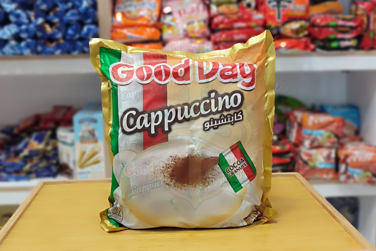 در هر بسته ۳۰ عدد بسته ی ۲۵ گرمی پودر کاپوچینو وجود دارد که بر روی آنها یک بسته پودر شکلات مخصوص برای تزئین قرار دارد.